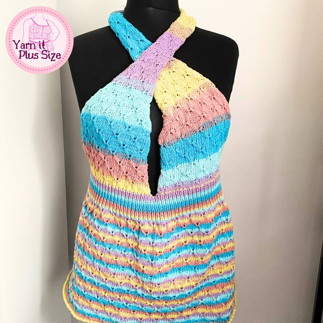 This on trend Summer Top has a cross neck and bare back style perfect for garden or festival entertainment, with a skirt length that can be adapted to a short top, long top or dress with ease. Although I have included instructions for sizes 40'' to 48'' bust, I have also given detailed instructions on how to tweak this pattern to fit even the largest of cup and bust sizes. If the sun is shining then this top will definitely show off your tan!